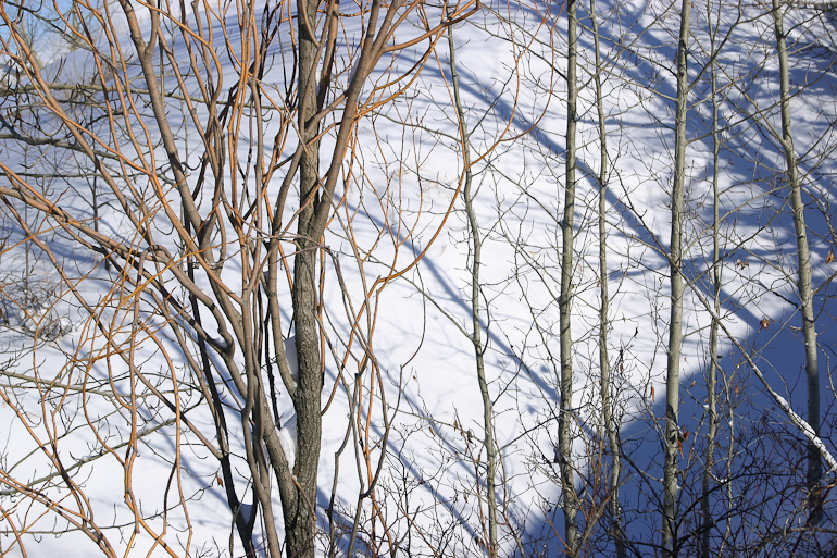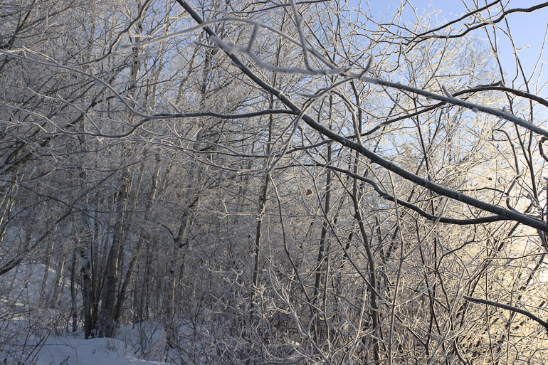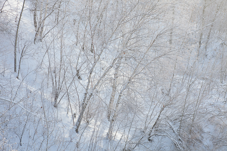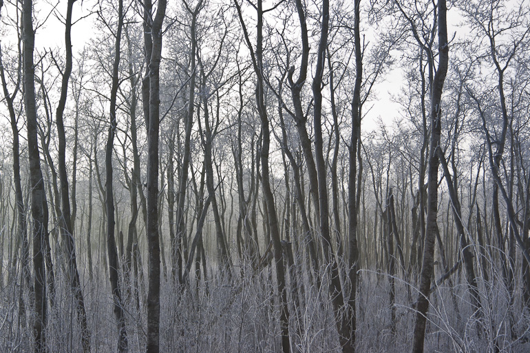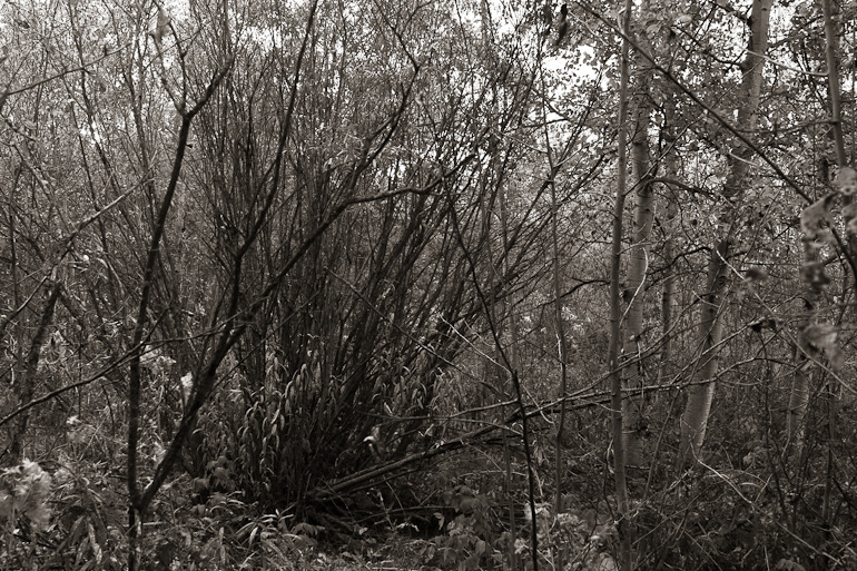 There are times when I stop while walking through the dense understory common in the boreal forest and aspen parkland to admire the complex beauty of the entwined branches, willows, grasses, and leaves. Then I bring my camera up, and as I look through the lens the complexity turns to chaos as the lens compresses the scene onto a two-dimensional plane. This is when the challenge (and fun) begins. By moving the camera a few degrees to one side, changing the focal length by a few millimeters, or opening the aperture a few stops, a composition may be found that is balanced, pleasing to the eye, and captures some of the beauty entangled in these forests.